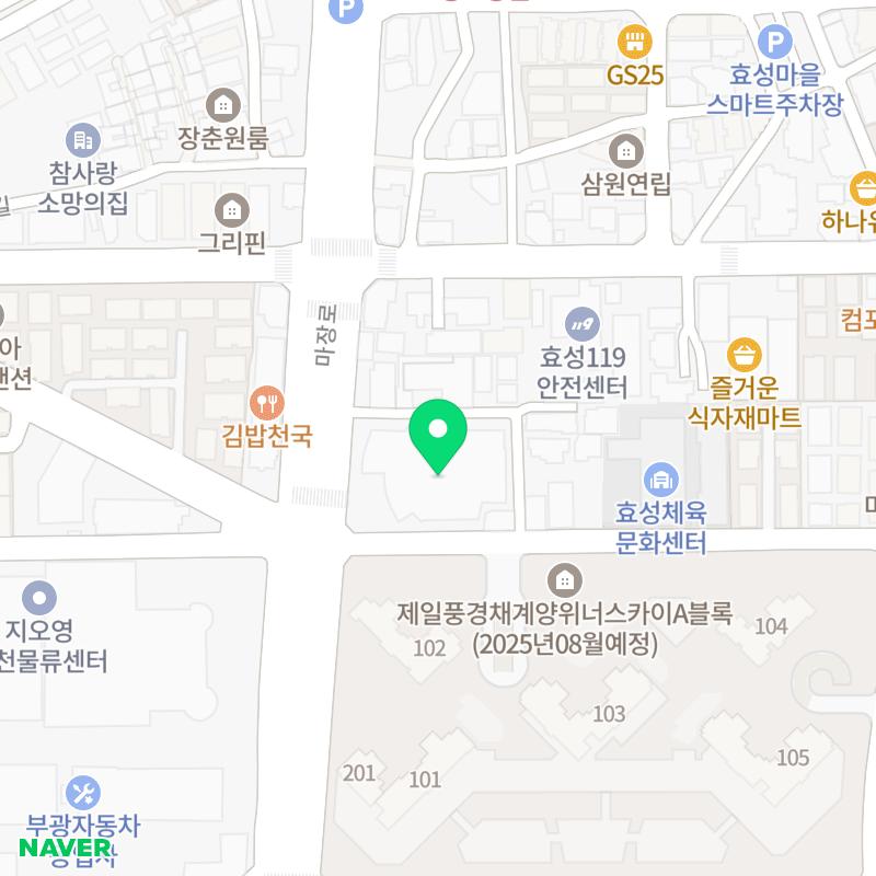 📍 주소: 인천광역시 부평구 세월천로 16 청천푸르지오아파트 관리사무소 건물 2층 (115동 앞)